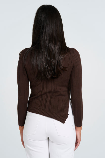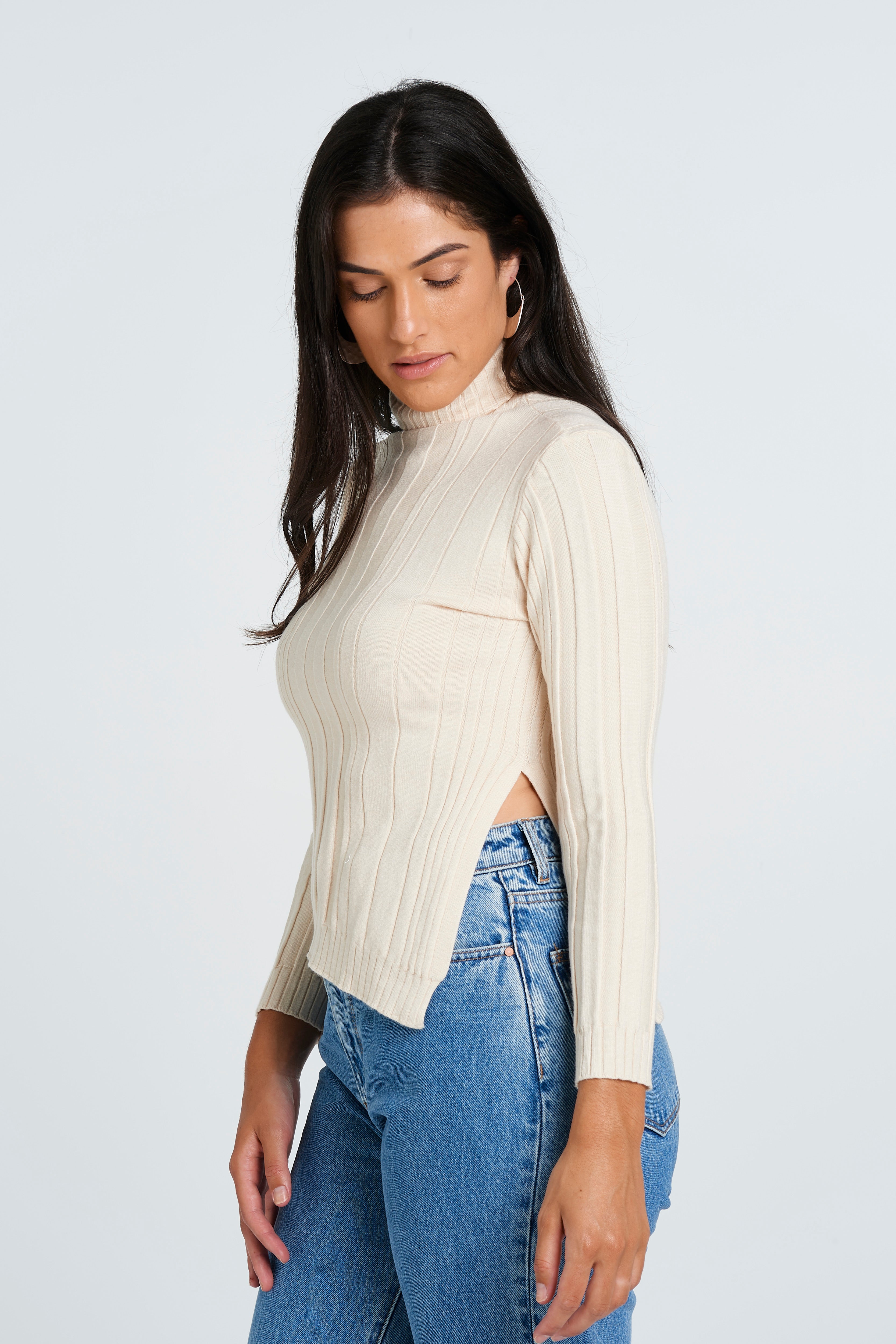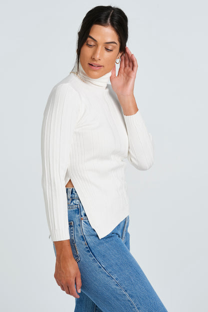 For all the Wendys & tilda angels out there! The Angel knit is a slim fitting vertical rib sweater with an asymmetrical hem line and singular side split. This is the most perfect layering piece with a puffer vest, or statement jacket!