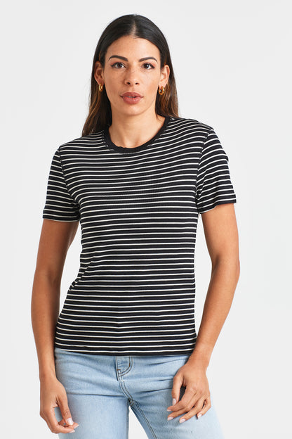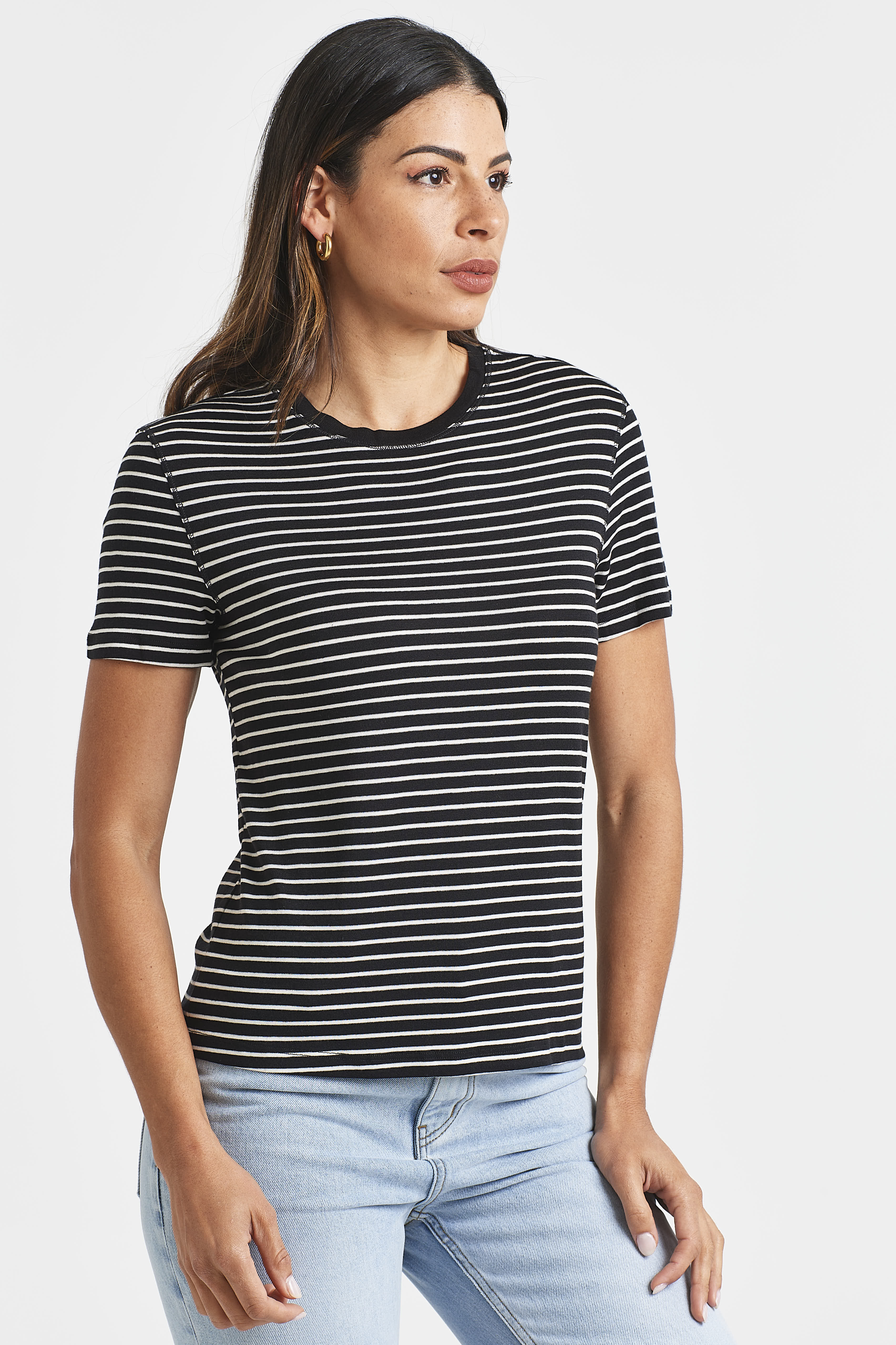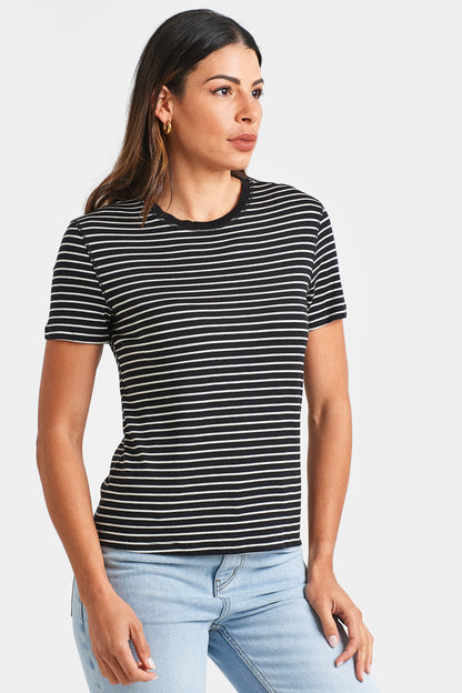 Effortlessly refined, the CLARA TEE is a slim-fit lifestyle tee crafted from a lightweight wool blend for all-day comfort. Featuring subtle stripes and a classic round neckline, it’s the perfect balance of casual ease and polished style.