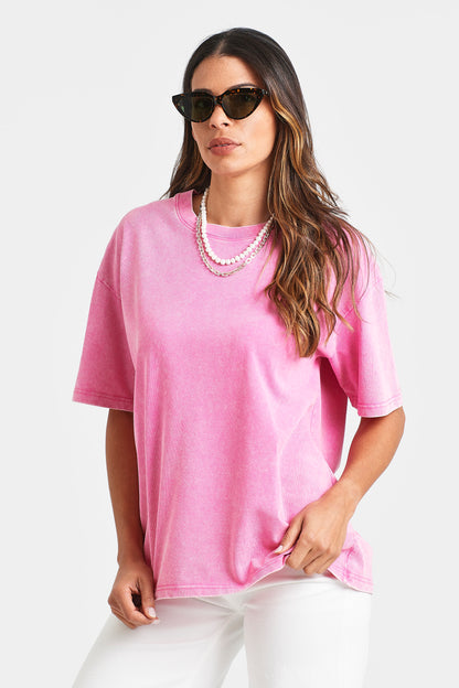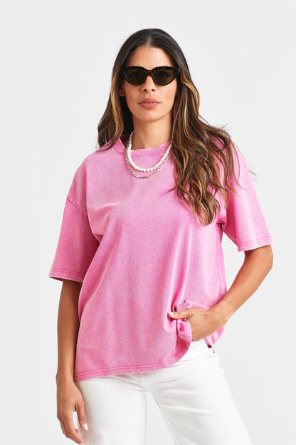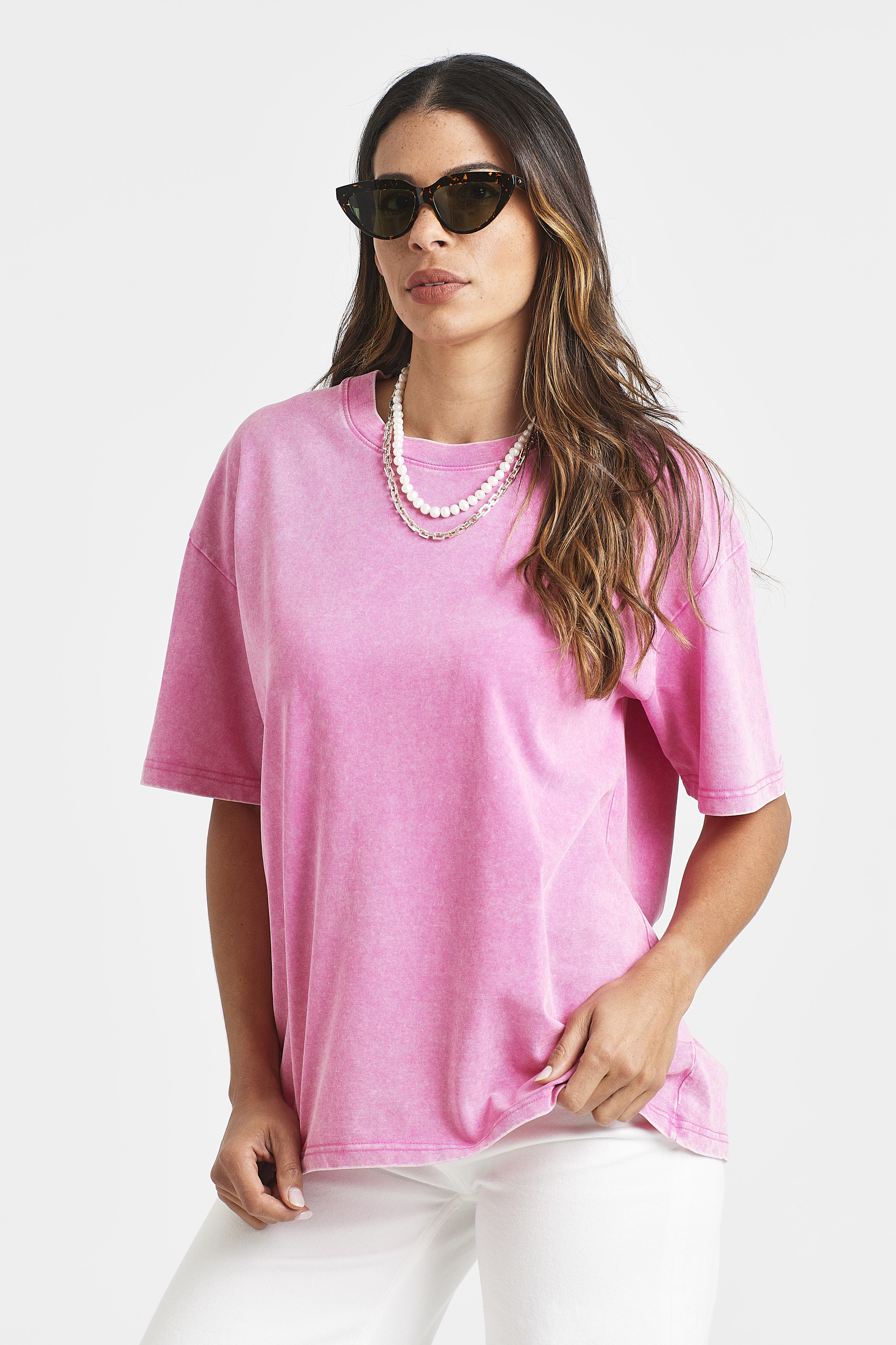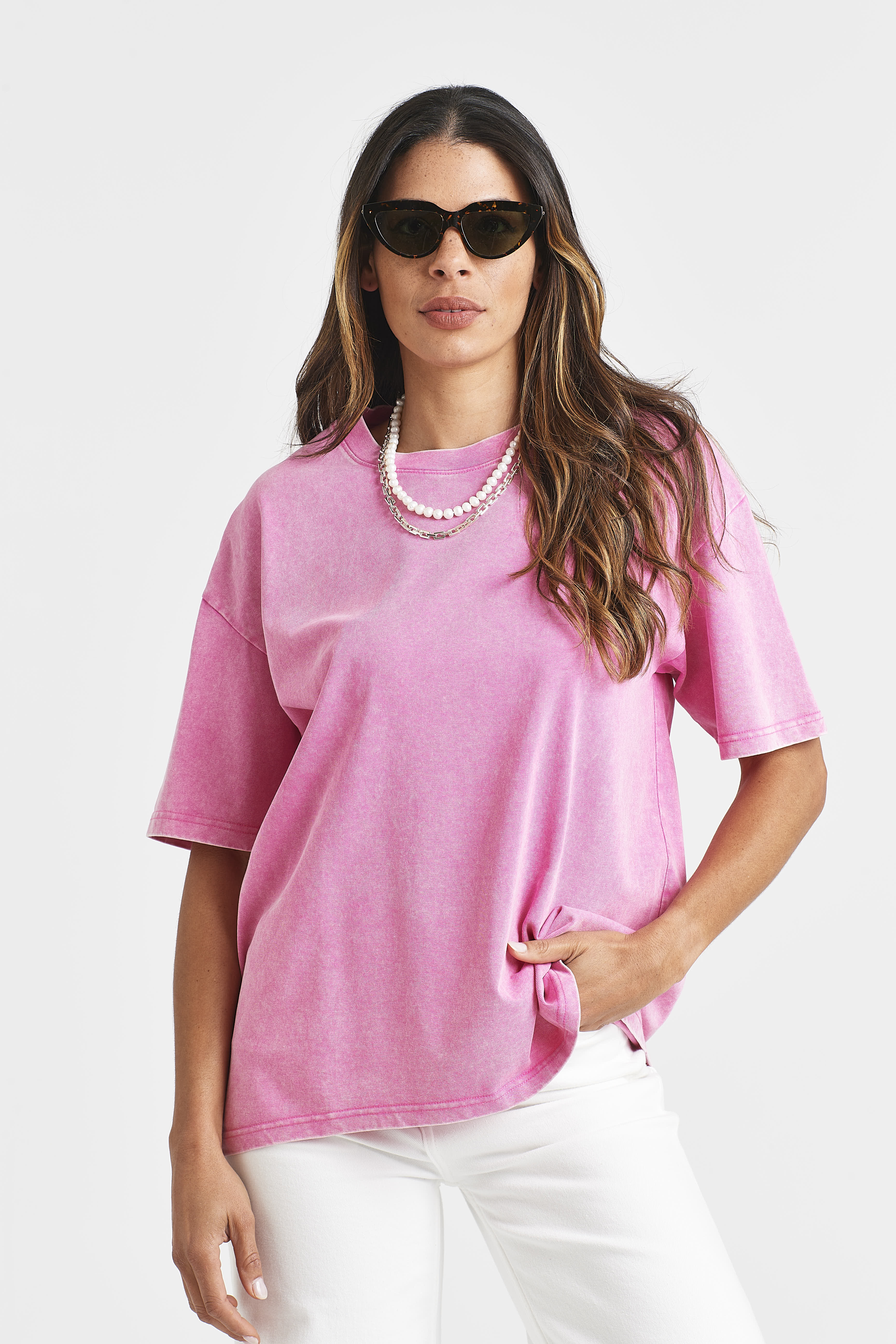 The Elodie Tee brings a vintage vibe to a wardrobe staple. Crafted from soft cotton in a bold bright pink, it features a relaxed fit that’s effortlessly cool and easy to wear, perfect for everyday laid-back style.