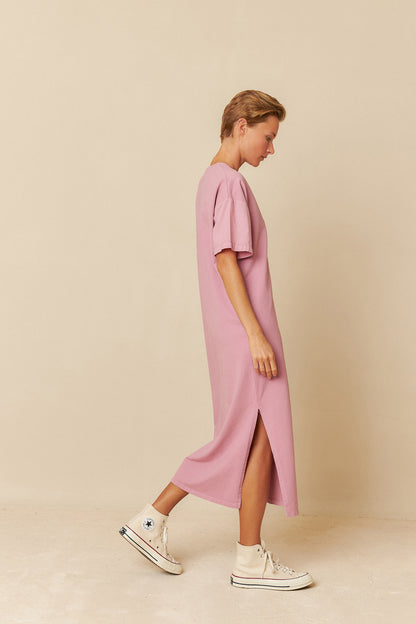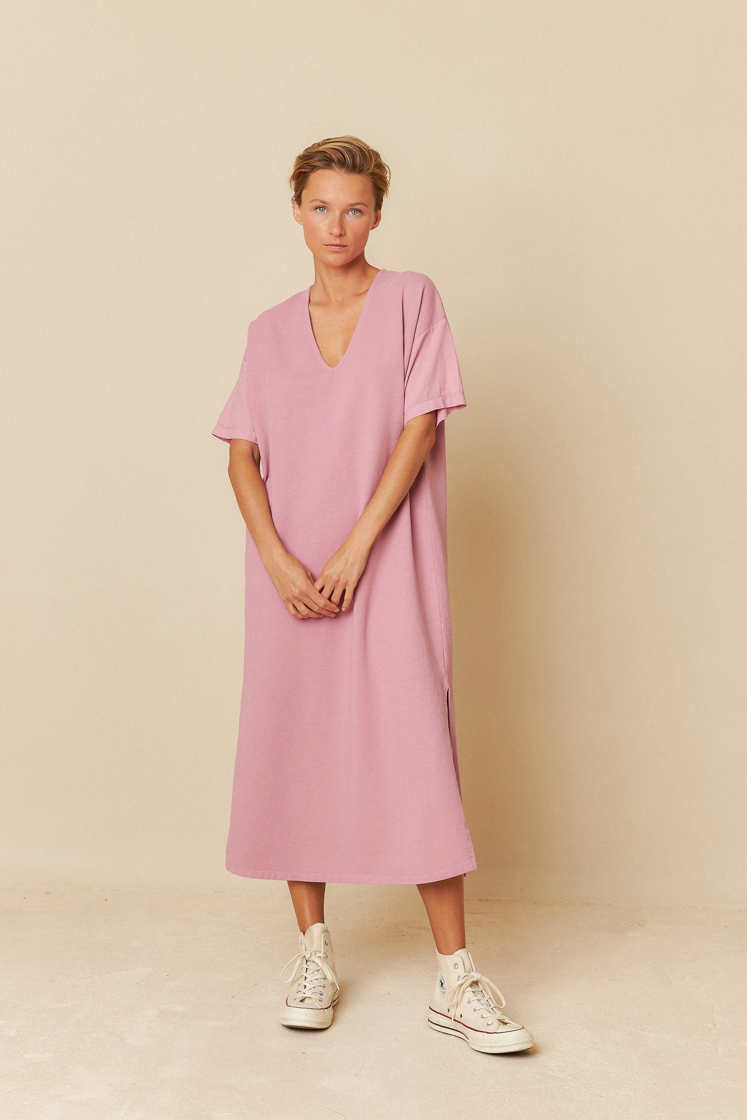 This terrycloth dress made from organic cotton combines style and comfort to perfection. With dropped shoulders and side slits, its design is both practical and stylish. The relaxed fit ensures a comfortable feel, making it a versatile choice for any occasion.