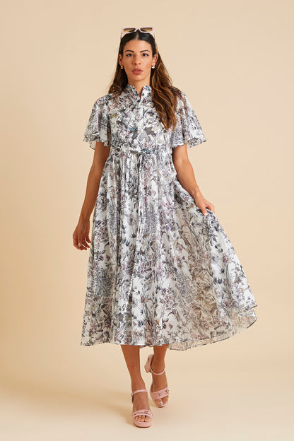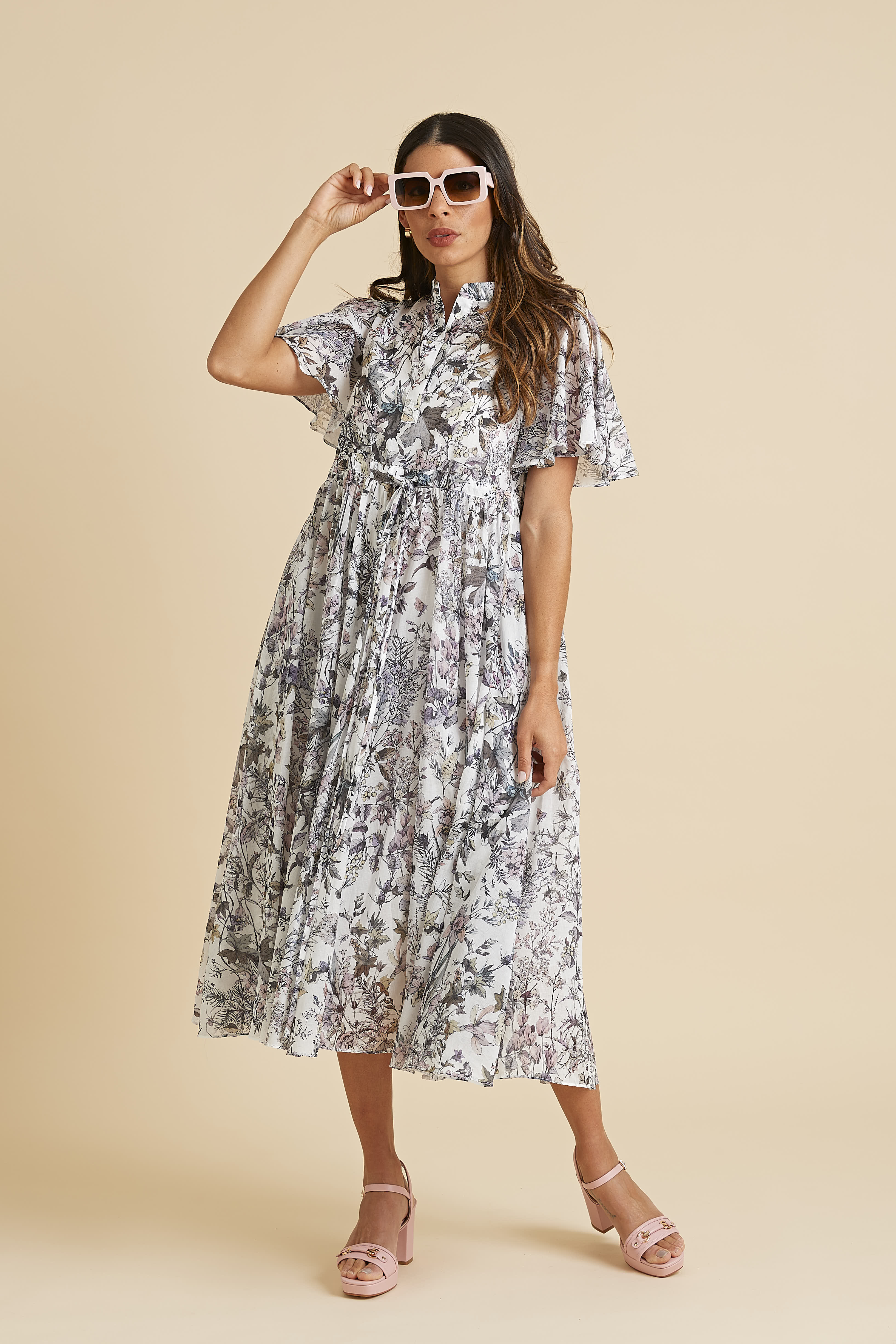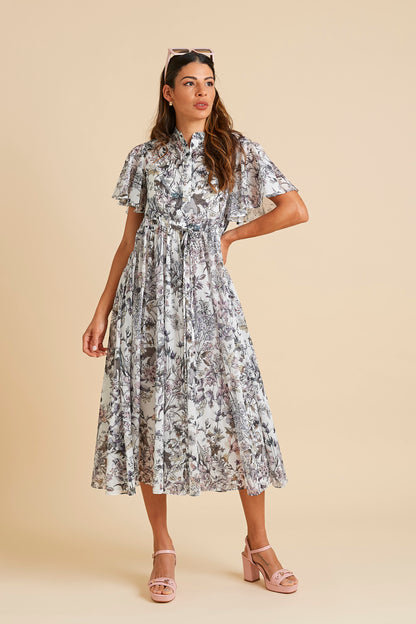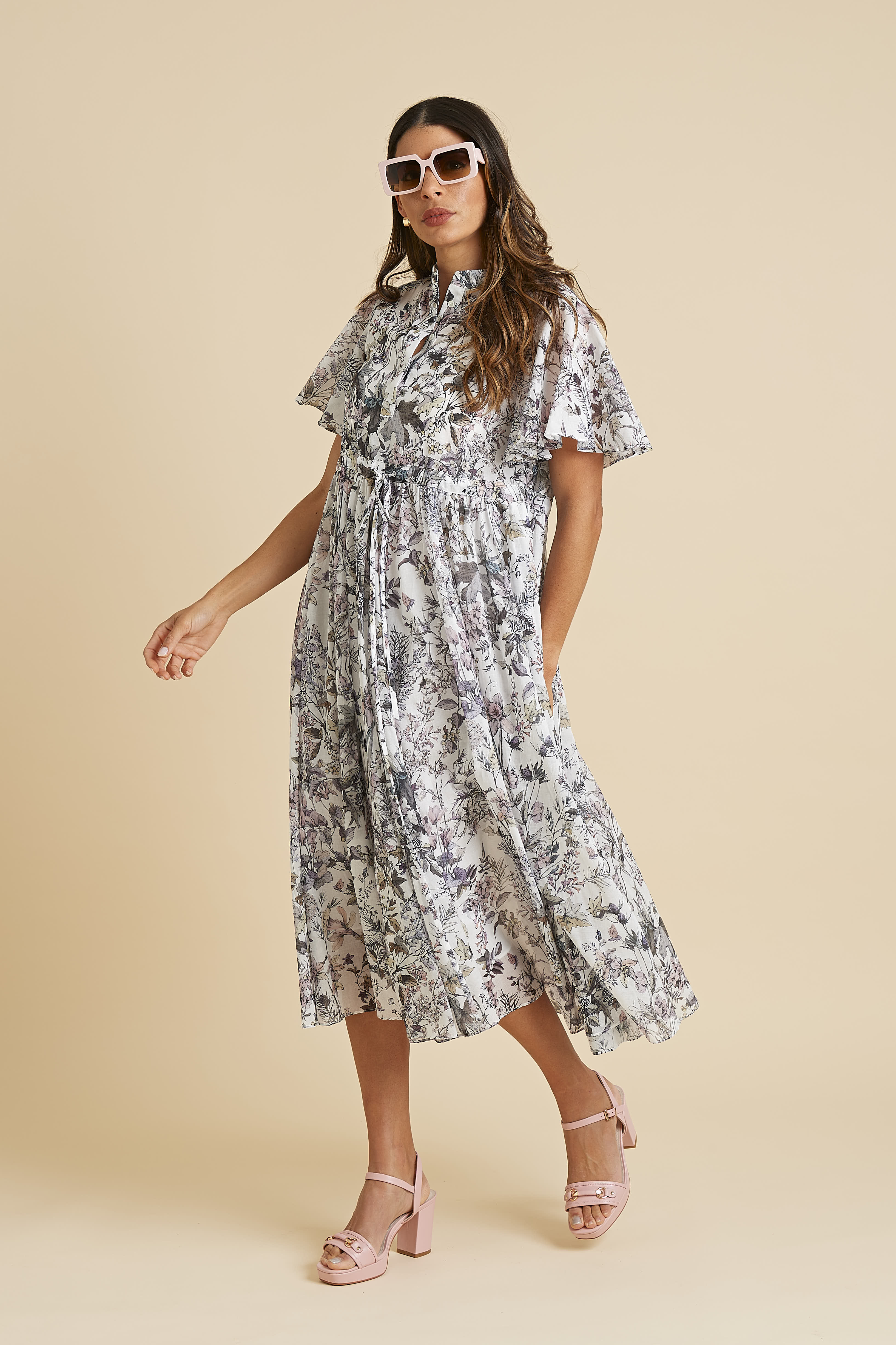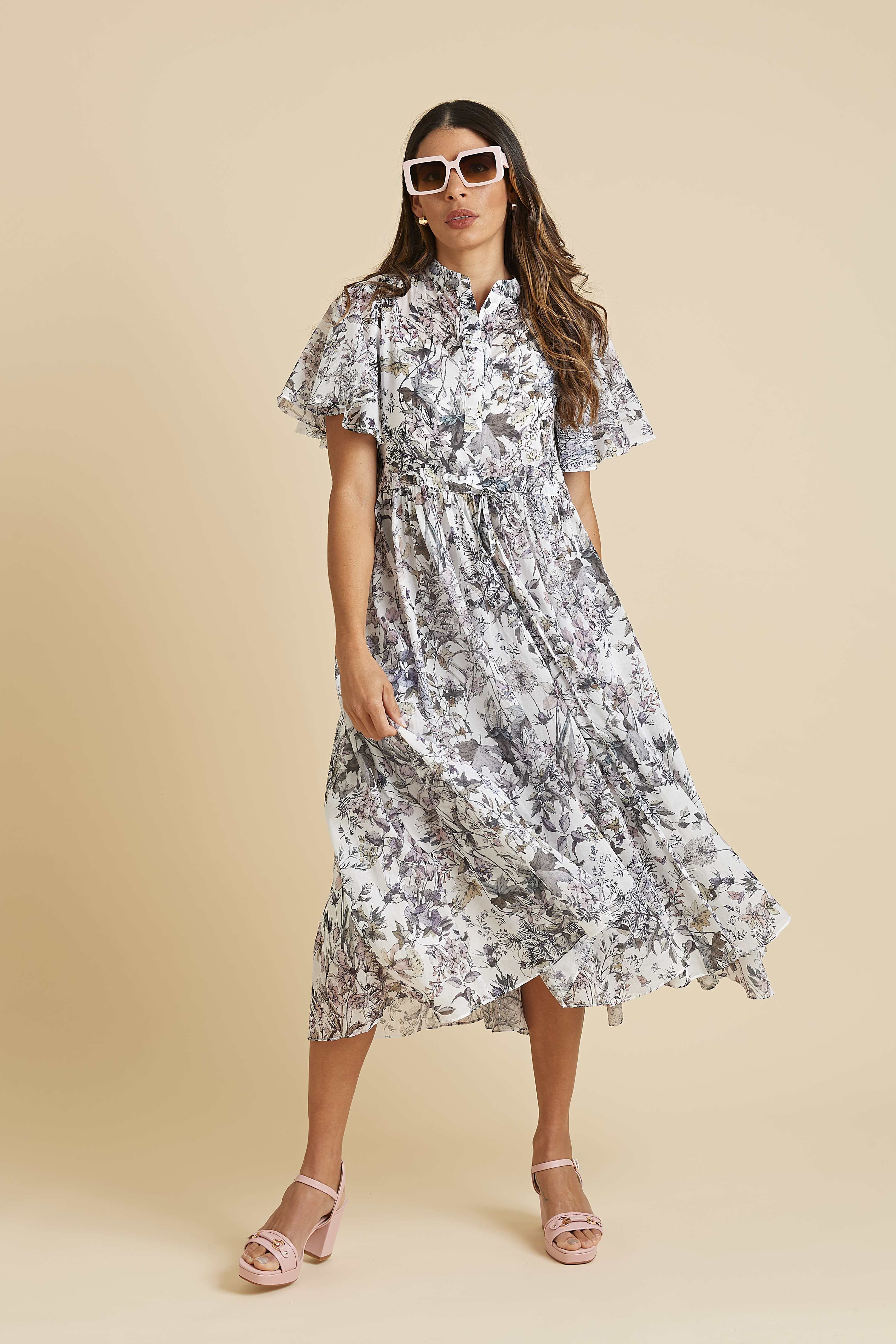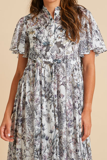 A romantic staple, the Georgette Dress is crafted from breathable cotton in a delicate floral print. With soft, floating sleeves, a button-through chest, and an adjustable drawcord waist, it offers a flattering silhouette with an effortlessly feminine feel.