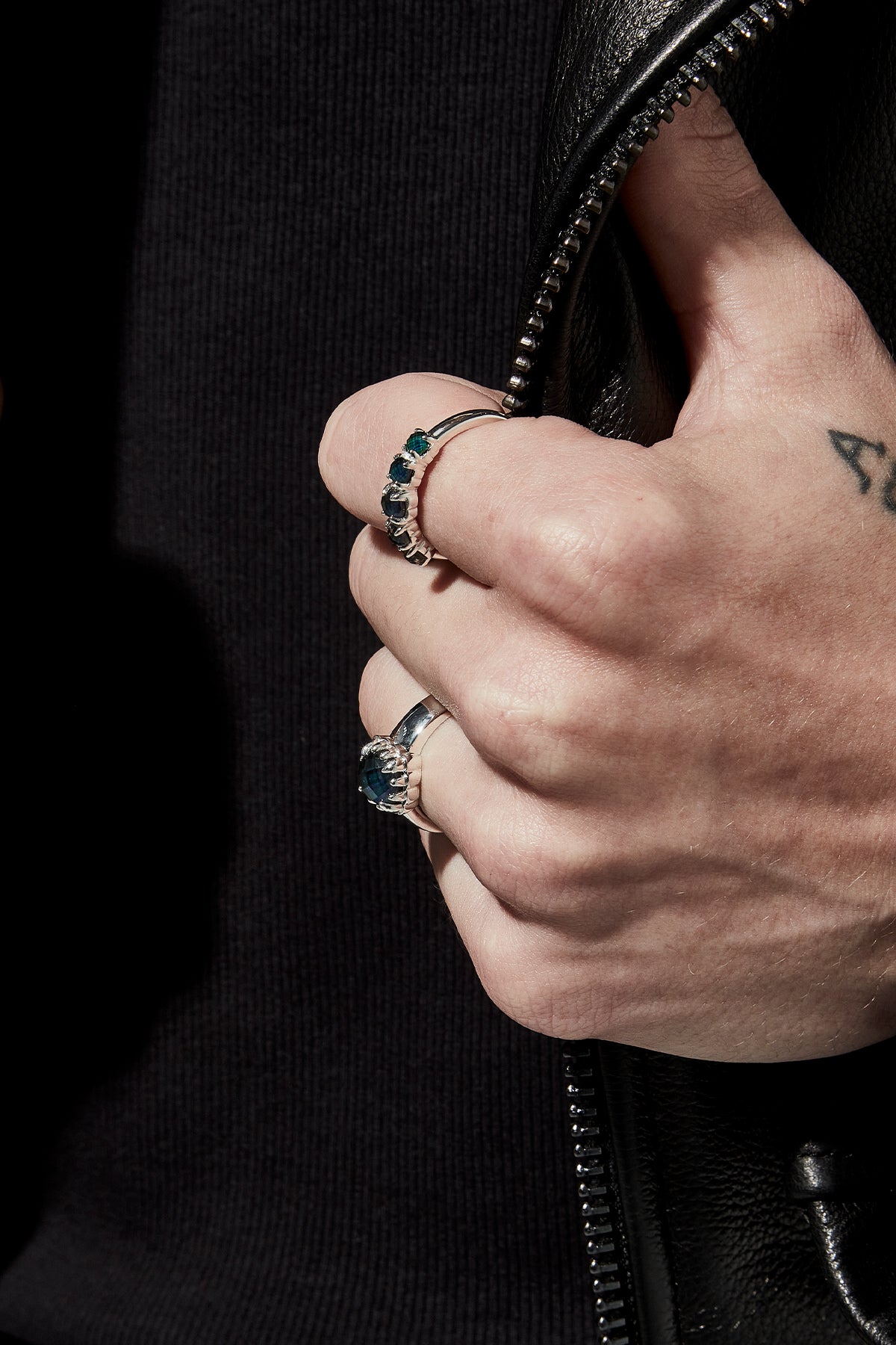 The Halo Cluster Ring features our new 'Mood Crystal'; a contemporary twist on the nostalgic mood ring. Crafted from facet-cut natural crystal on a liquid crystal base, these unique colour-changing stones elevate the traditional glass design.
