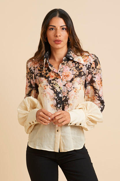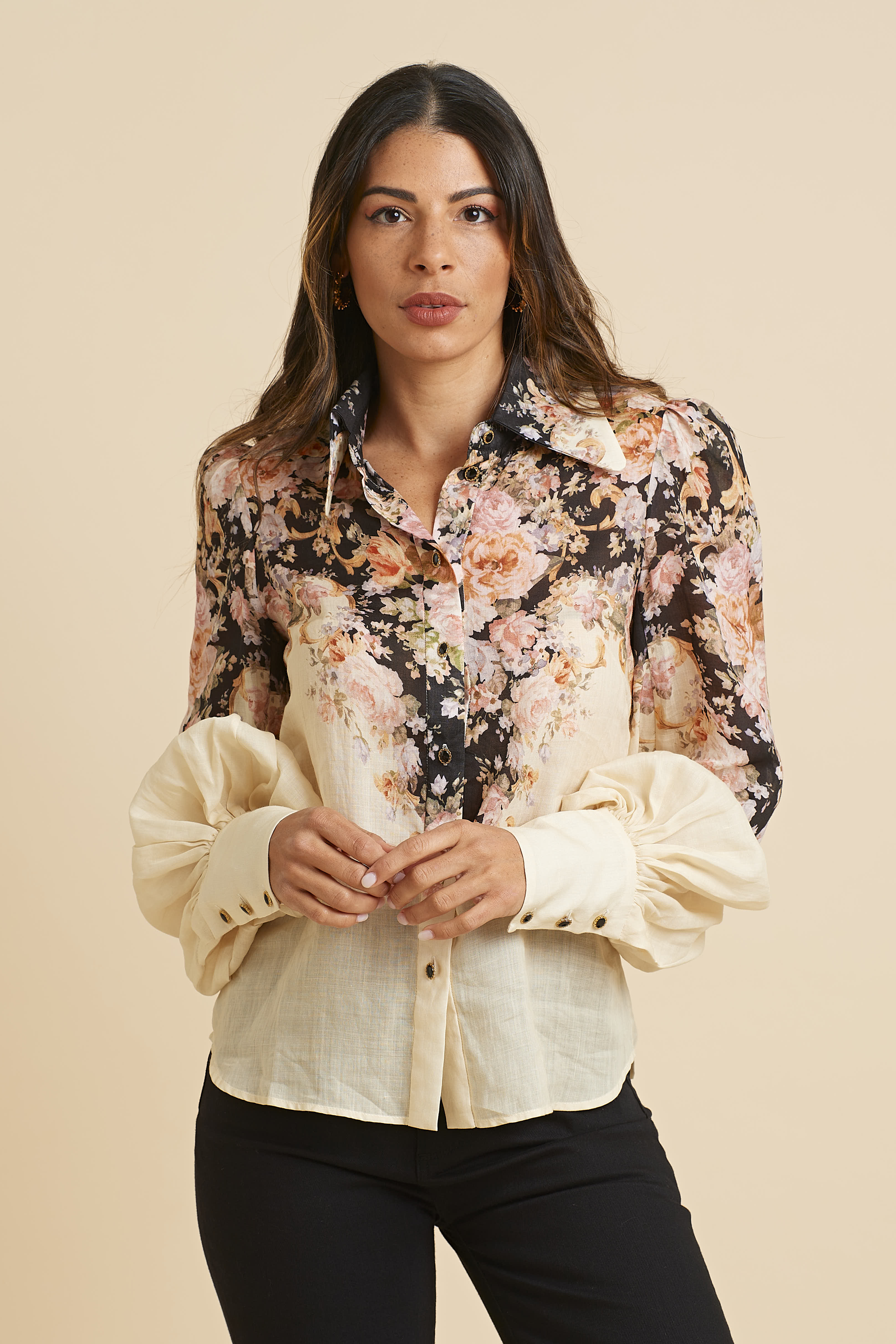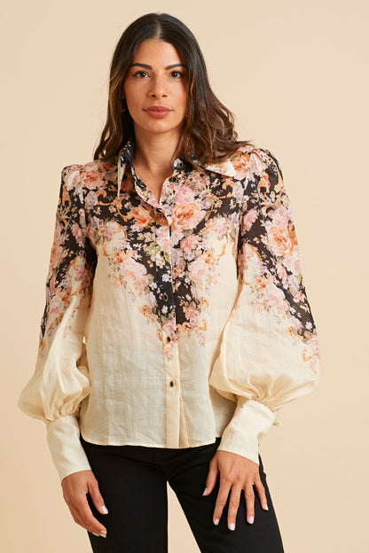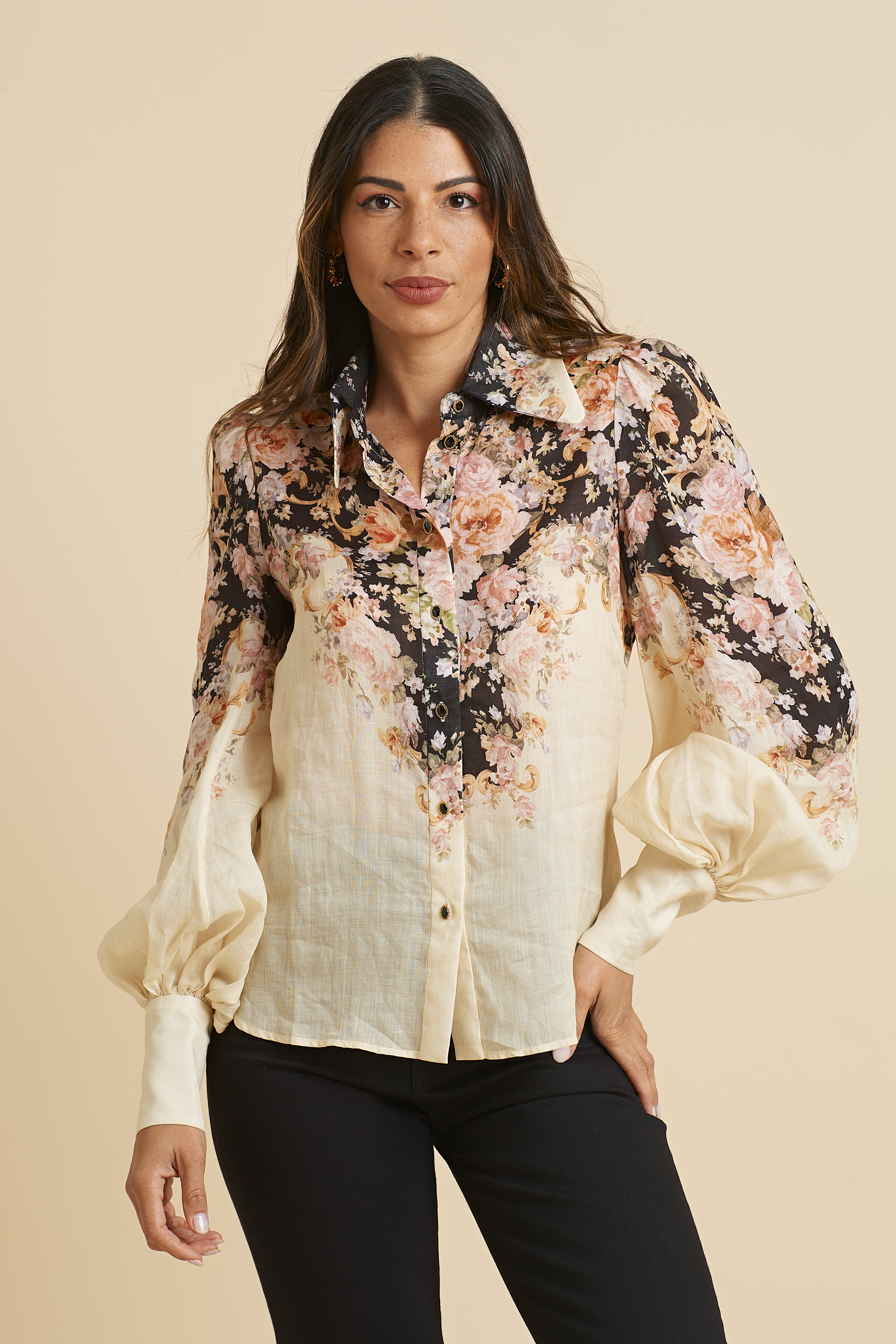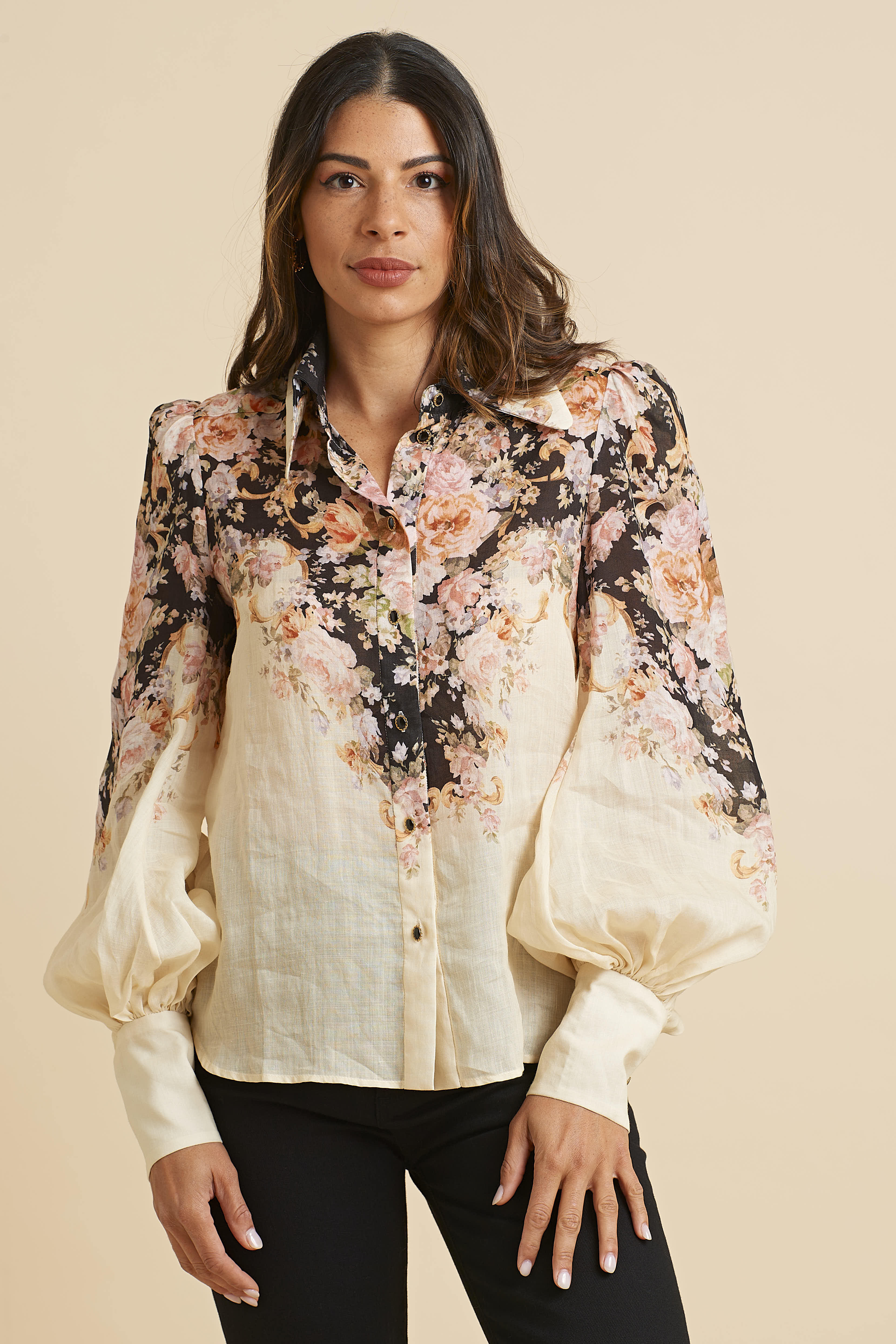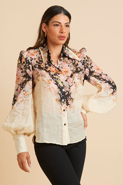 The Marchelle Shirt is crafted from lightweight ramie and features a romantic floral print with a classic button-through front. Beautifully full, billowing sleeves add a soft, dramatic touch to this effortlessly elegant piece.