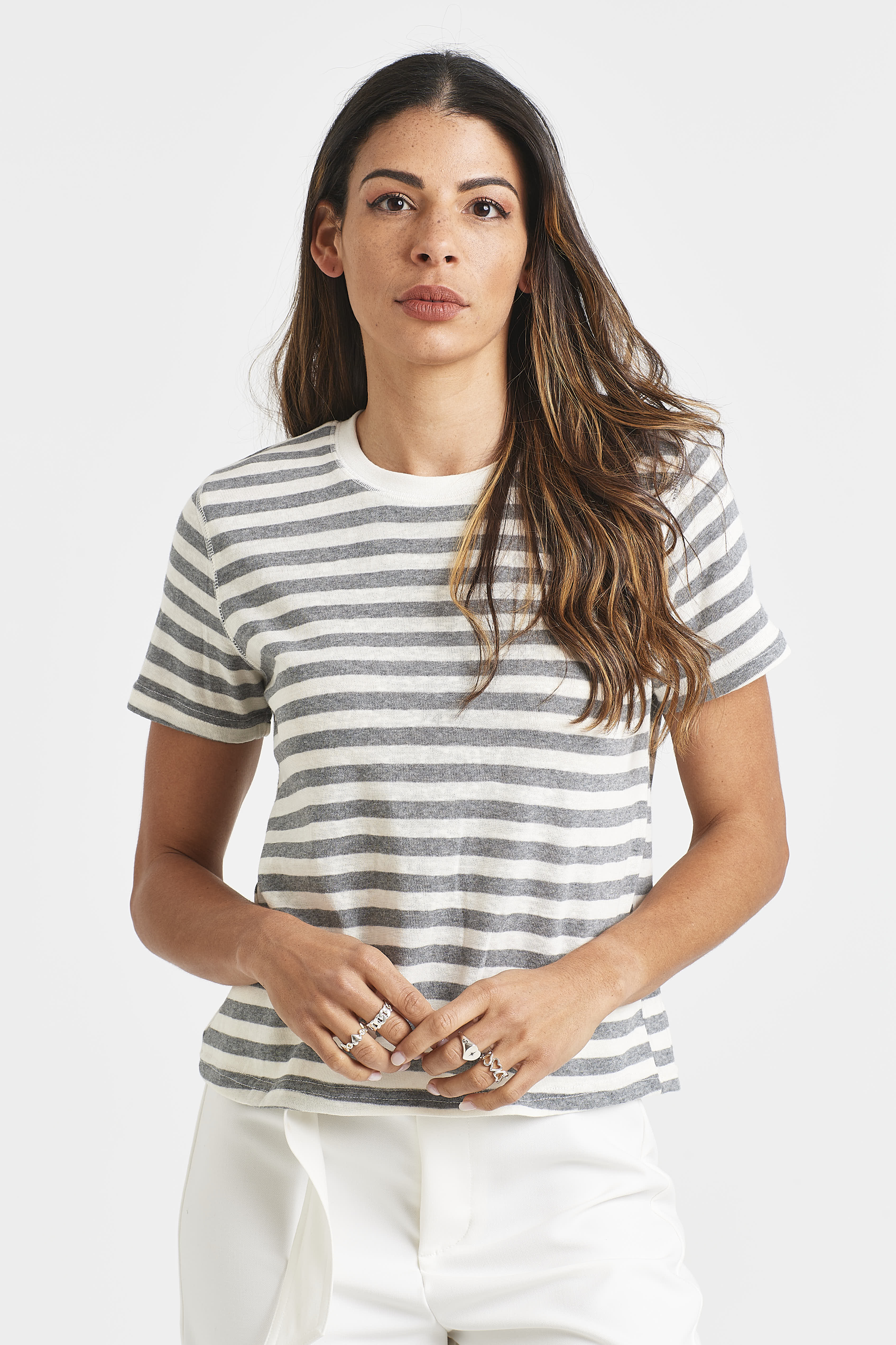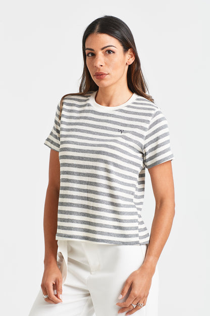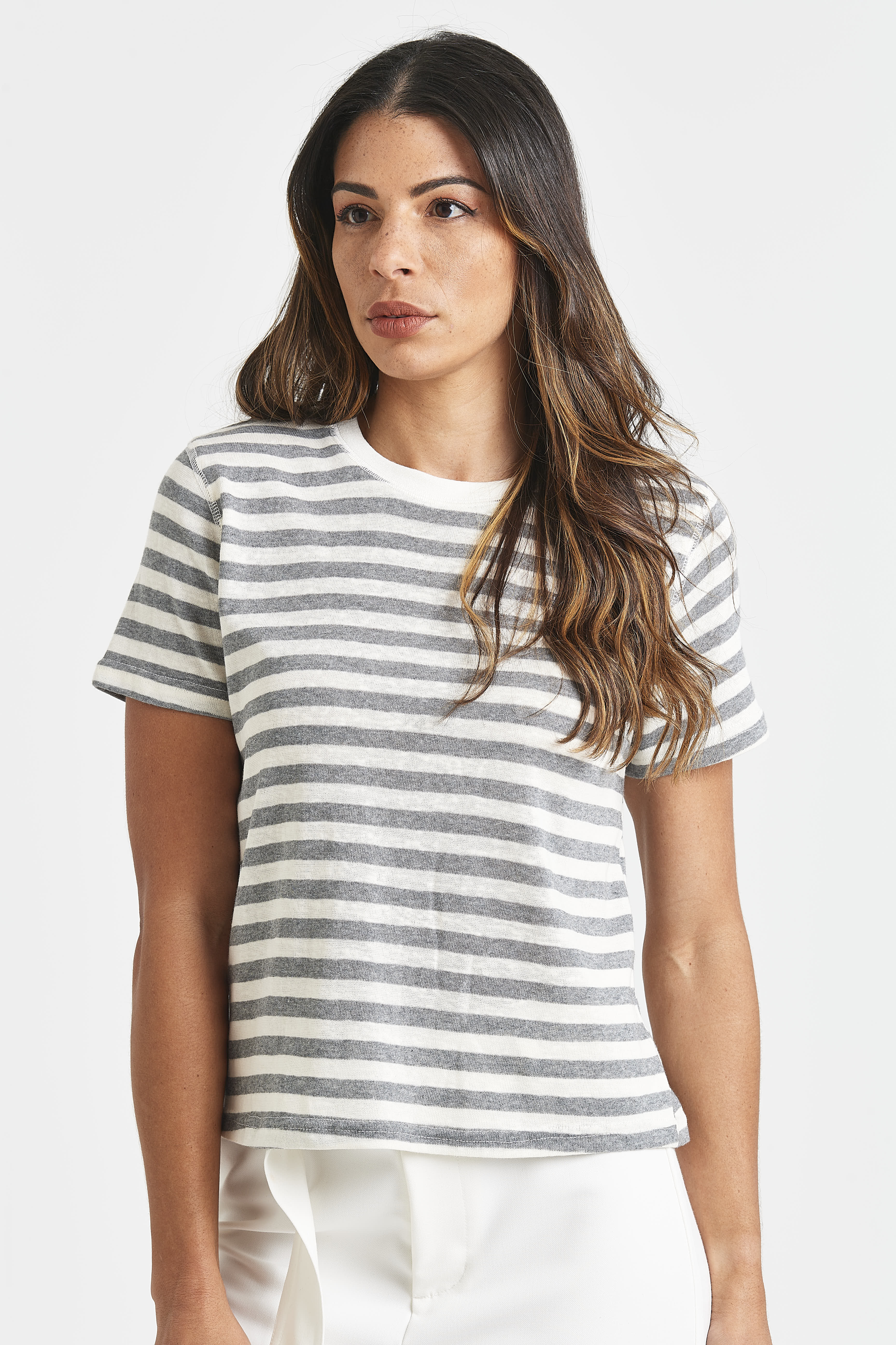 The Mariano Tee is a classic everyday style, crafted from soft cotton in a timeless grey and white stripe. With its clean silhouette and comfortable fit, it’s an easy go-to for effortless dressing.