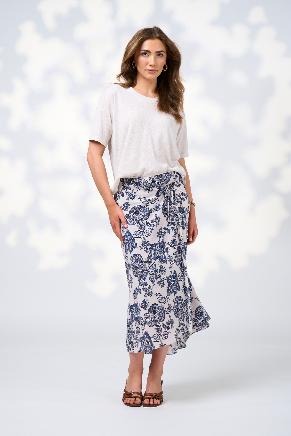 Easy fitting tee in a metallic cotton cashmere, to add shimmer and elevate your look. Features side splits and a stepped hem.