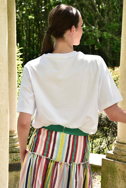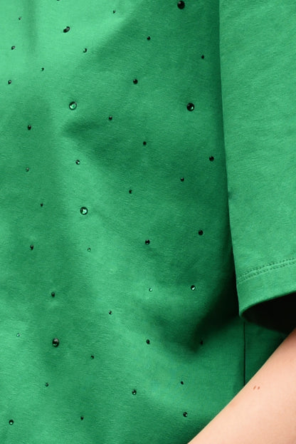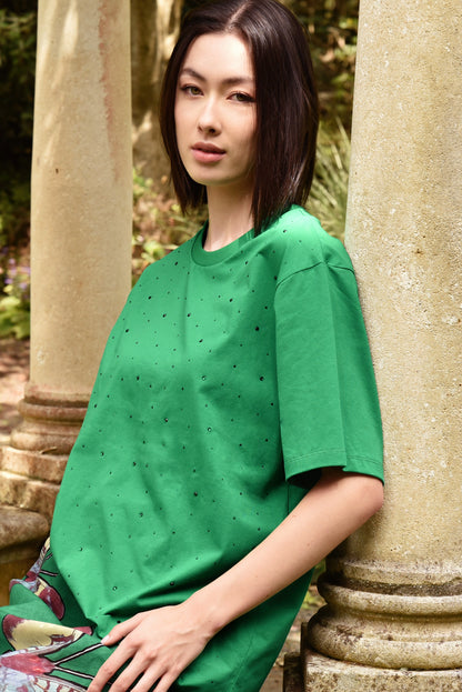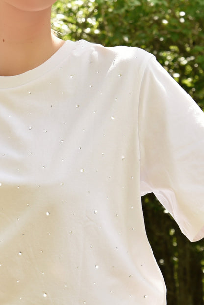 Dappled diamantes offer a touch of glitz and glamour for everyday-wear. The ‘Sparkle Magic’ top sports the classic Curate t-shirt silhouette, offering a comfortable and relaxed fit. Diamantes speckled throughout take this piece from AM to PM with ease, minimizing fashion ruts!