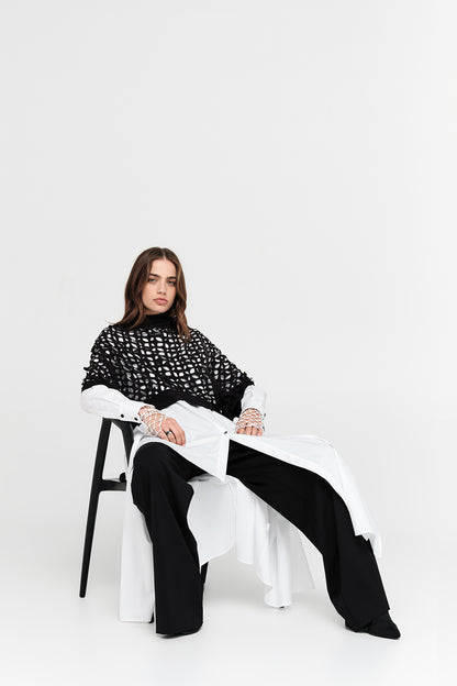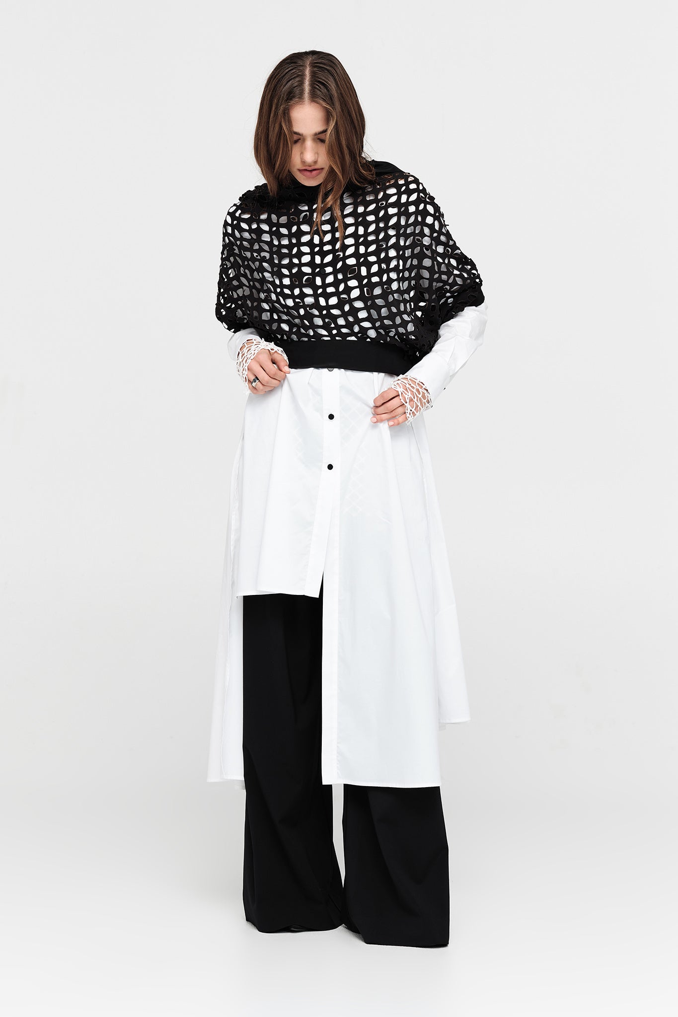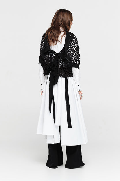 Elevate your wardrobe with the TAG TOP — a delicate 100% silk layering piece featuring chic cut-out detailing and a versatile reversible design. Finished with an elegant tie closure, this top offers effortless style and endless styling possibilities.