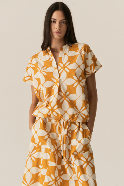 A fresh silhouette for spring, the Turin Shirt features a relaxed, unfitted shape crafted from 100% cotton in our exclusive Turin Print. Designed with a slash neckline and dropped armholes forming a short sleeve with folded cuff detail, it offers effortless style and versatility. An internal drawcord at the hem allows you to cinch or wear loose to suit your look.