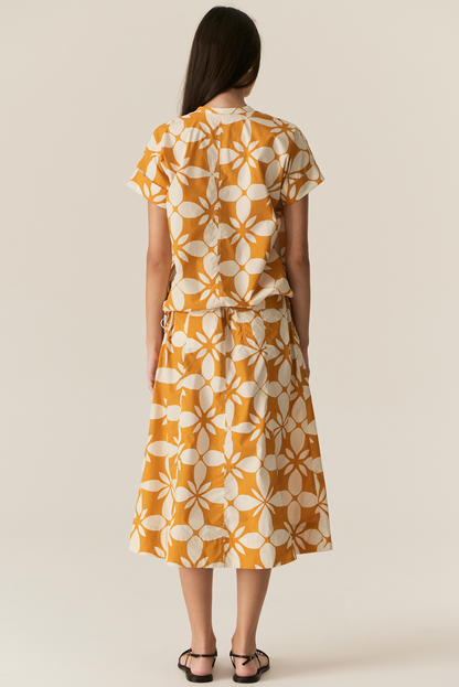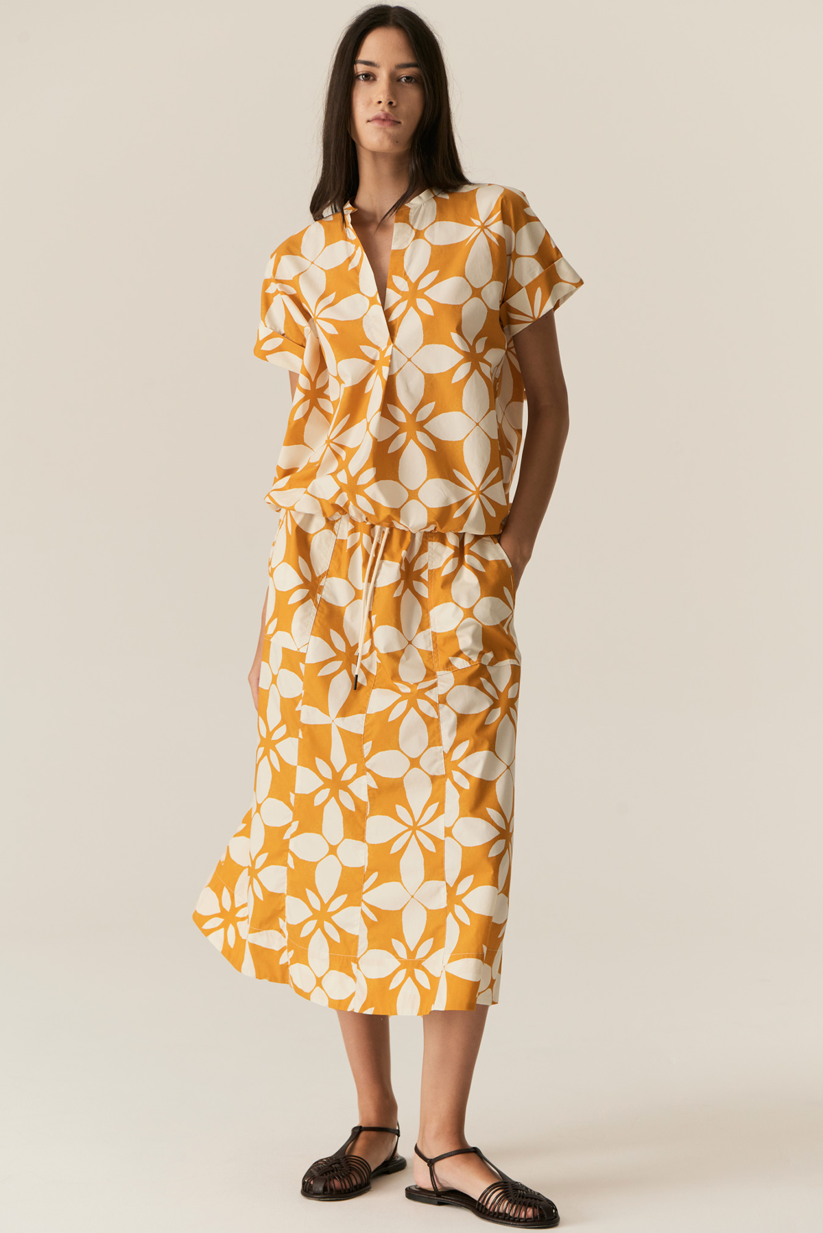 A relaxed staple for the season, the Turin Skirt features an easy A-line silhouette crafted in 100% cotton with our exclusive Turin Print. Designed with an elasticated waistband and natural drawcord, it includes hip pockets, flap back pockets, and panel detailing for soft structure. A deep hem adds a considered finish to this everyday favourite.