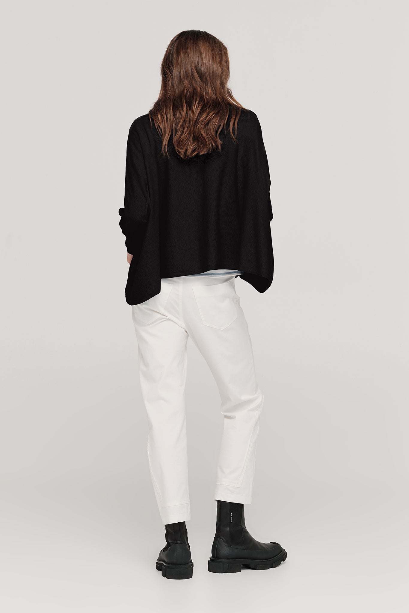 A knitwear staple, the Varigation Sweater shape is a style that you will keep reaching for this season. This one-size rectangular piece brings comfort and style to your everyday life. V crossover at the front allows versatility, and the elongated ribbed cuff creates flattering contrast amongst the volumes.
